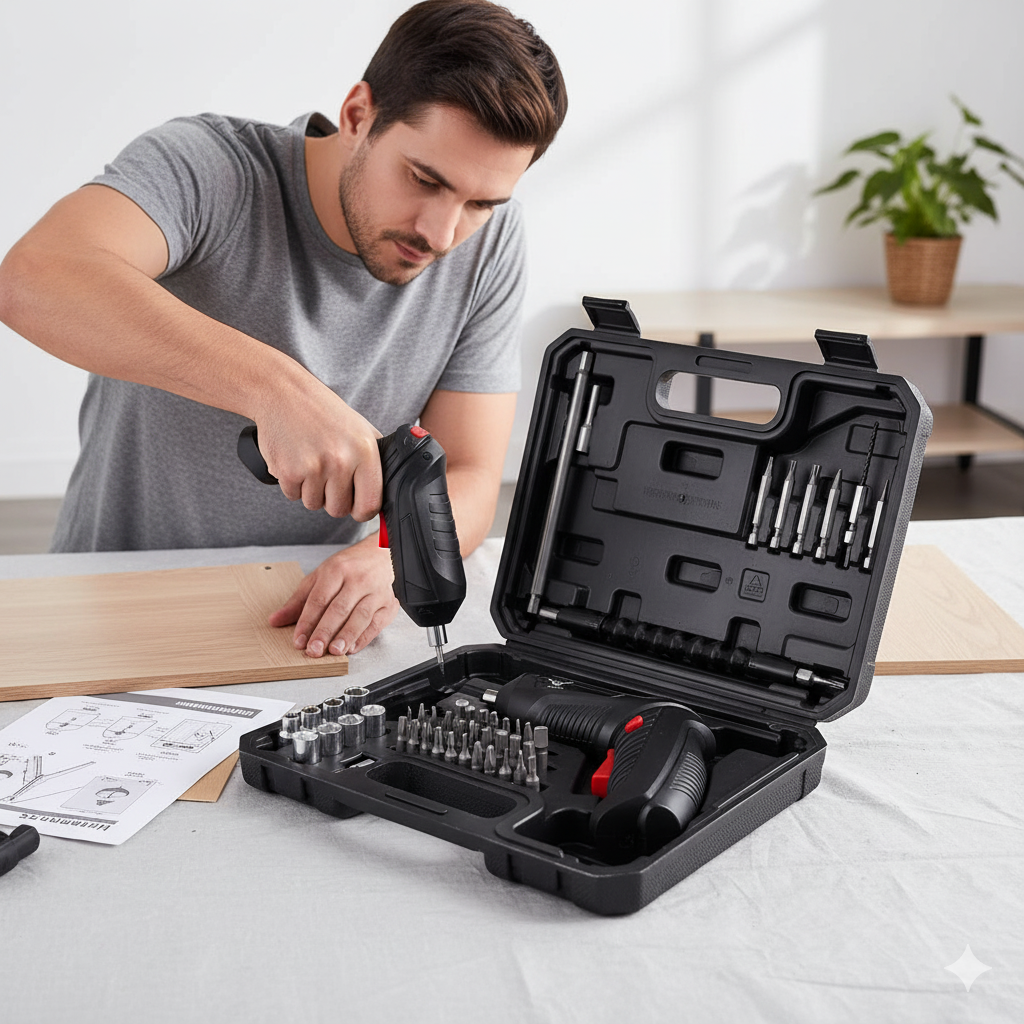 Máxima Eficiencia: Destornillador Eléctrico 3.6V con 47 Accesorios | Potencia 3.5Nm y Doble Ángulo