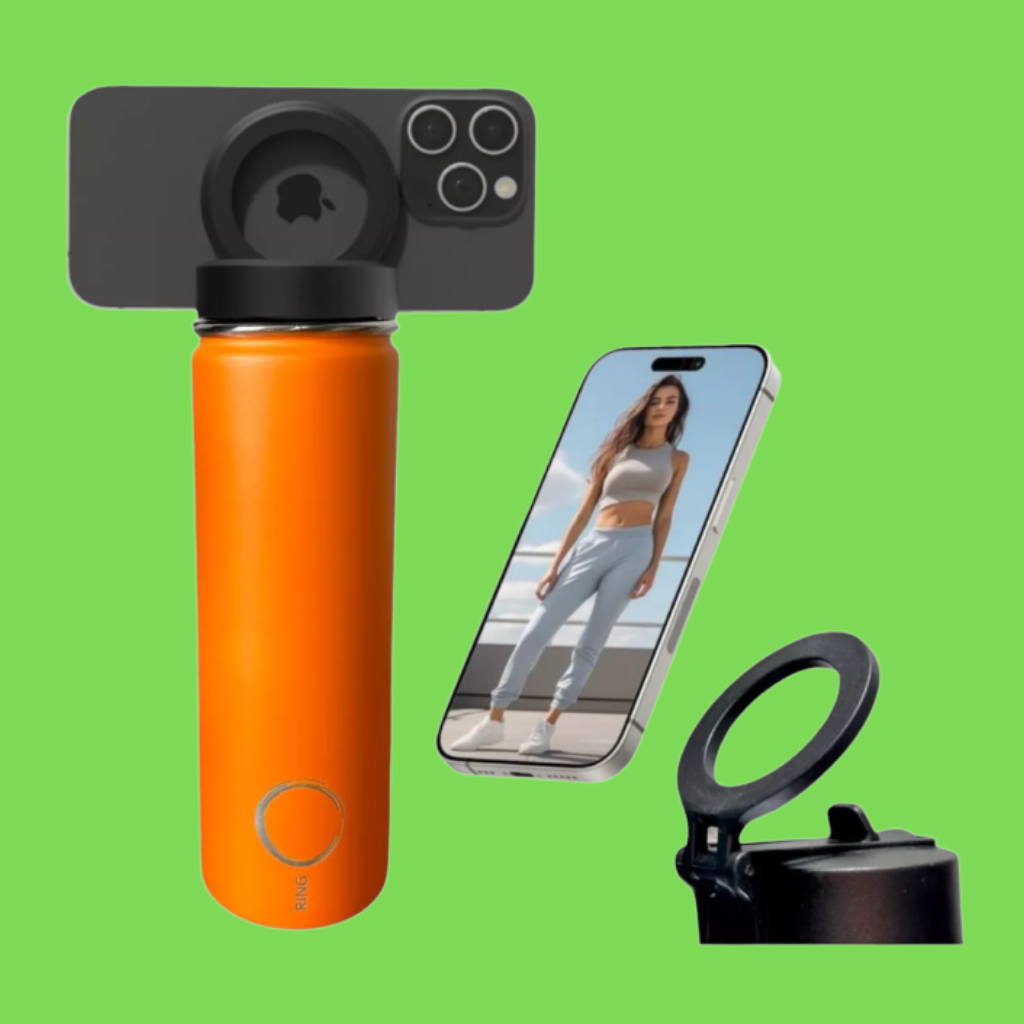 Diseño 2 en 1 Revolucionario: Mantente hidratado y a la vez captura videos, toma fotos con temporizador o sigue rutinas de ejercicio sin trípodes.